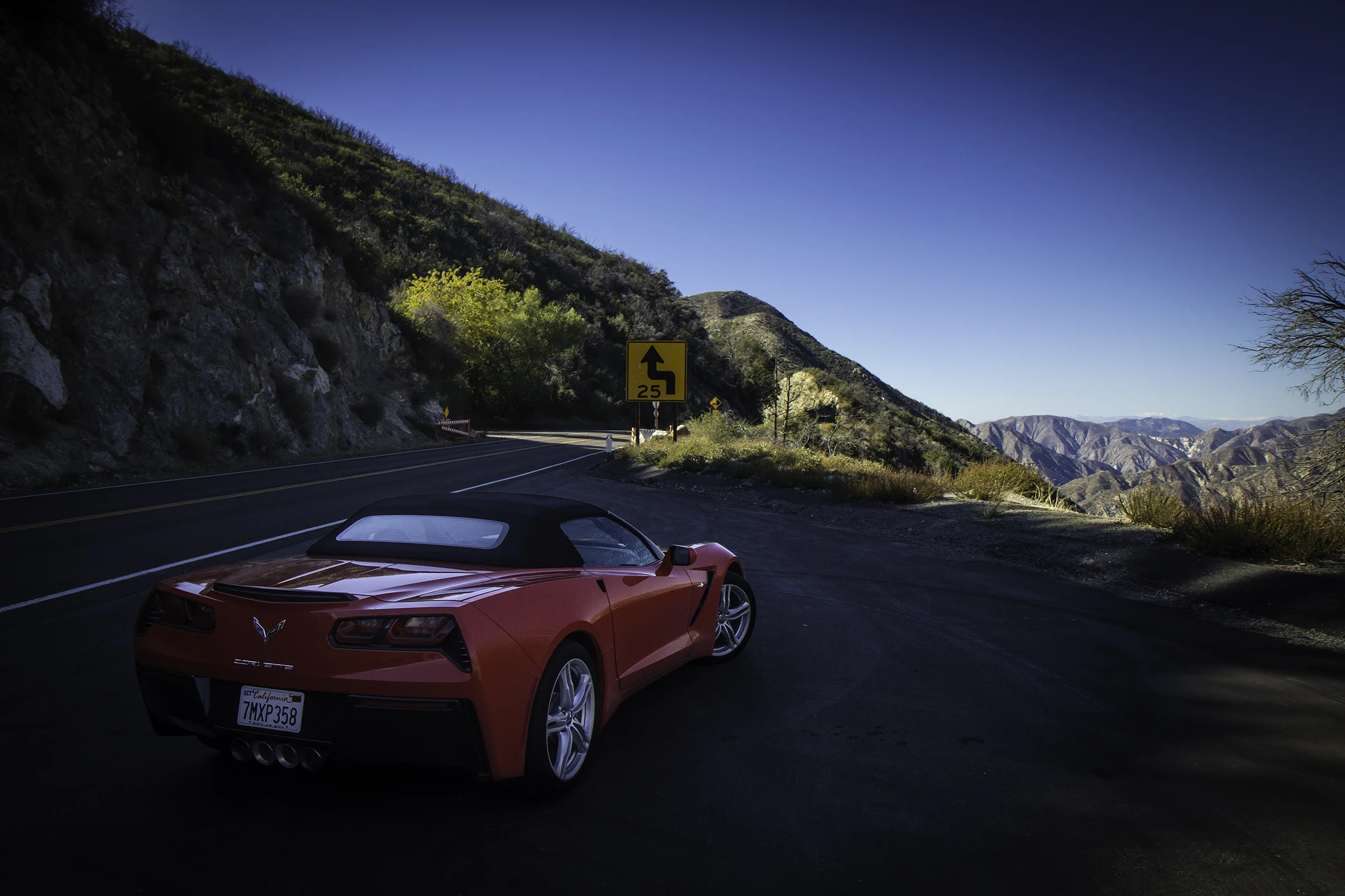 We decided to hit the mountains. So we drove from Marina Del Ray to Angeles Crest highway. I was not expecting it to be one of the best roads I’ve ever been on. I instantly wished I had my Ducati 899 or my Ninja 636. I can see it being a great motorcycle road, but I couldn’t have imagined a better car to carve the canyons with. Using the onboard diagnostics, we were able to calculate G’s through corners. It wasn’t uncommon to be pulling .80 - .95 G’s through some of the hard hairpins. What was most impressive is that that new Vette is extremely balanced! The revised suspension allows it to be firmly planted and the chassis ridged enough to inspire confidence when flying at speed.